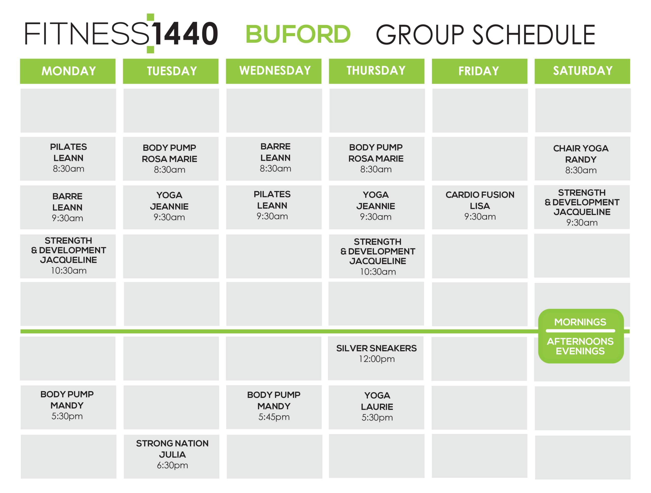 GROUP FITNESS SCHEDULE
